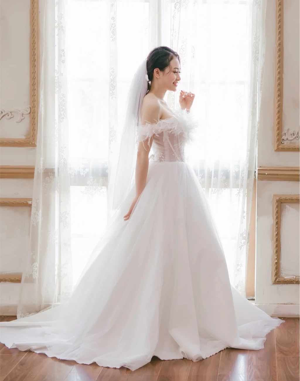 This slim A-line wedding dress in dreamy chiffon is as effortless as it gets.